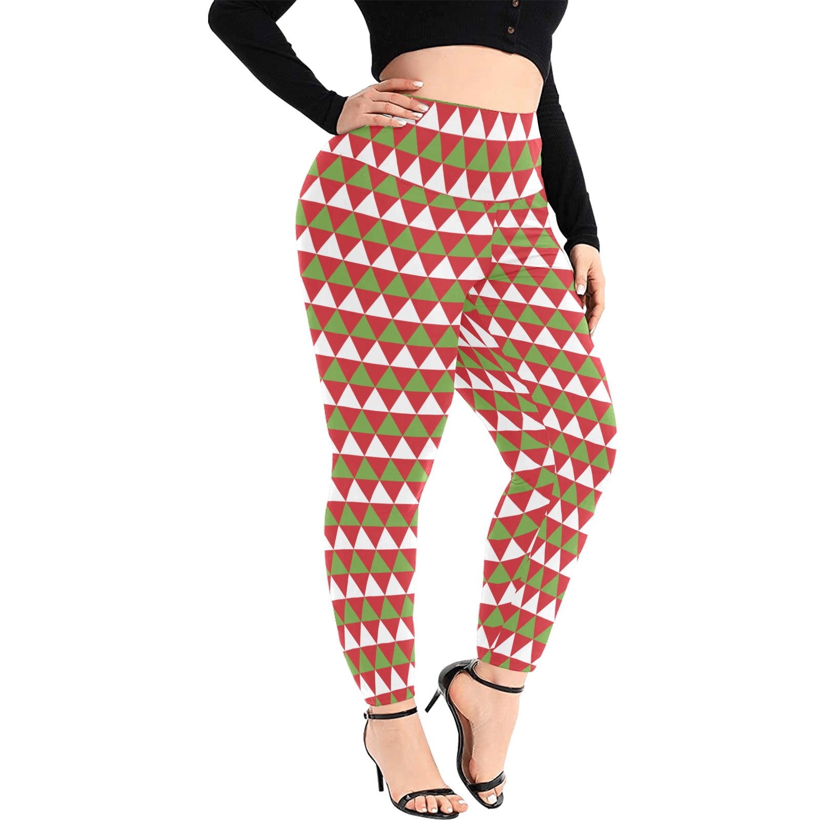 - Unique 3D Printed Design: Featuring a vibrant all-over print of playful red and green triangles that capture the spirit of Christmas, these leggings will have you feeling festive all season long.